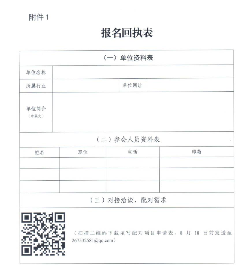 請有意向參會(huì)的單位于8月28日前填報(bào)回執(zhí)及配對項(xiàng)目申請表,詳情見附件。